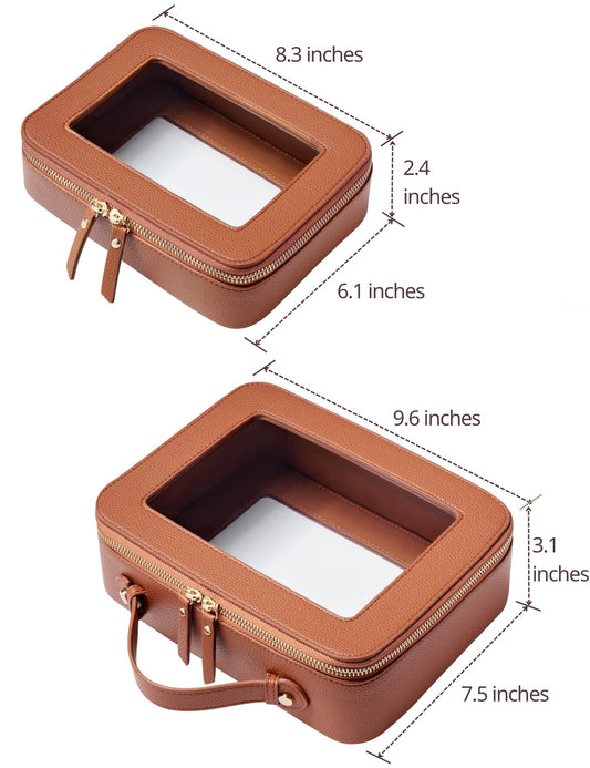 Popvibe Clear Makeup Bag, Two-Piece Set, Brown
