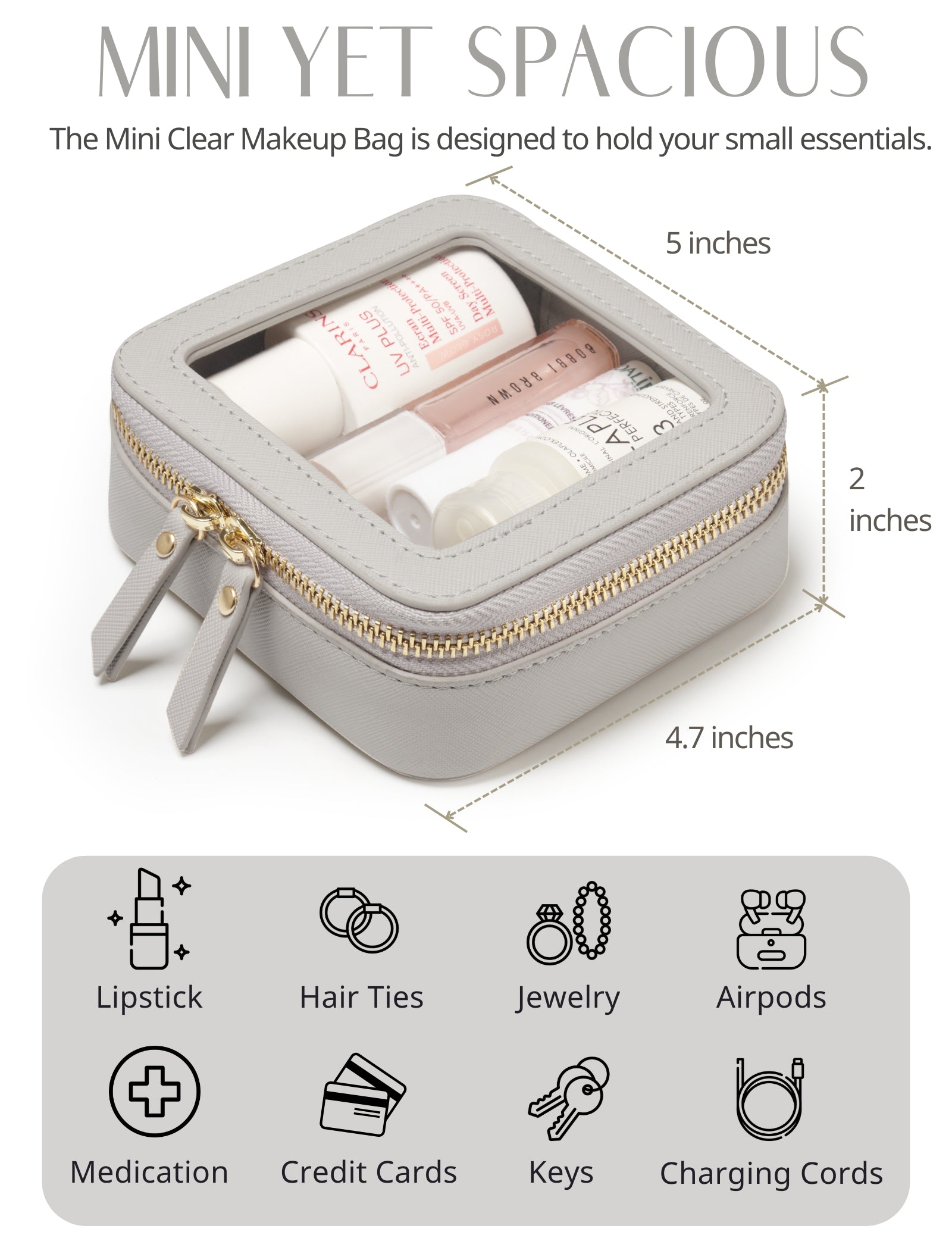 - [Mini but Mighty] – The mini makeup bag measures 5'' x 4.7'' x 2'' (12.7cm x 12cm x 5cm), perfect for holding daily mini essentials including lip balms, hair ties, jewelry, Air Pods, charging cords and medications. Slip it into your purse, backpack, everyday tote or travelling bag for easy access to your must-have items.